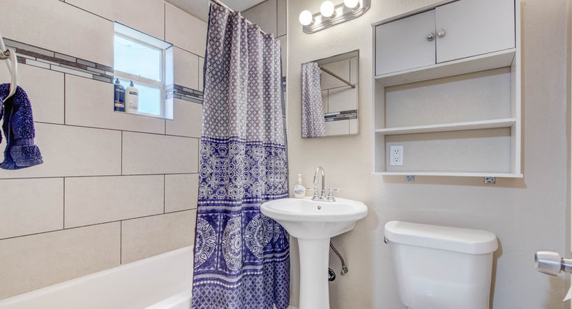 ✔ A bathroom area with a toilet, sink and shower stocked with shampoo, conditioner, body wash, and lots of storage for your toiletries